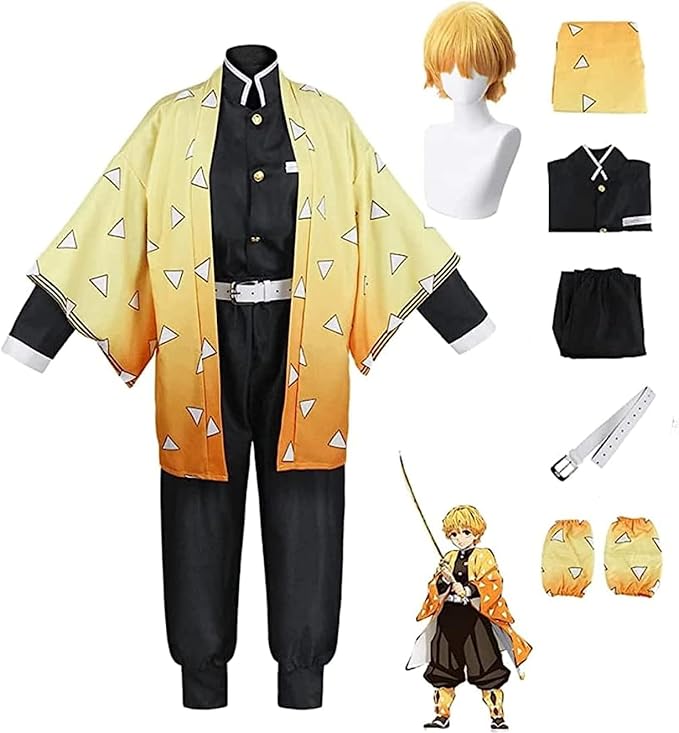 Items included:Zenitsu costume: Kimono + Top + Pants + Belt + LeggingsZenitsu wig