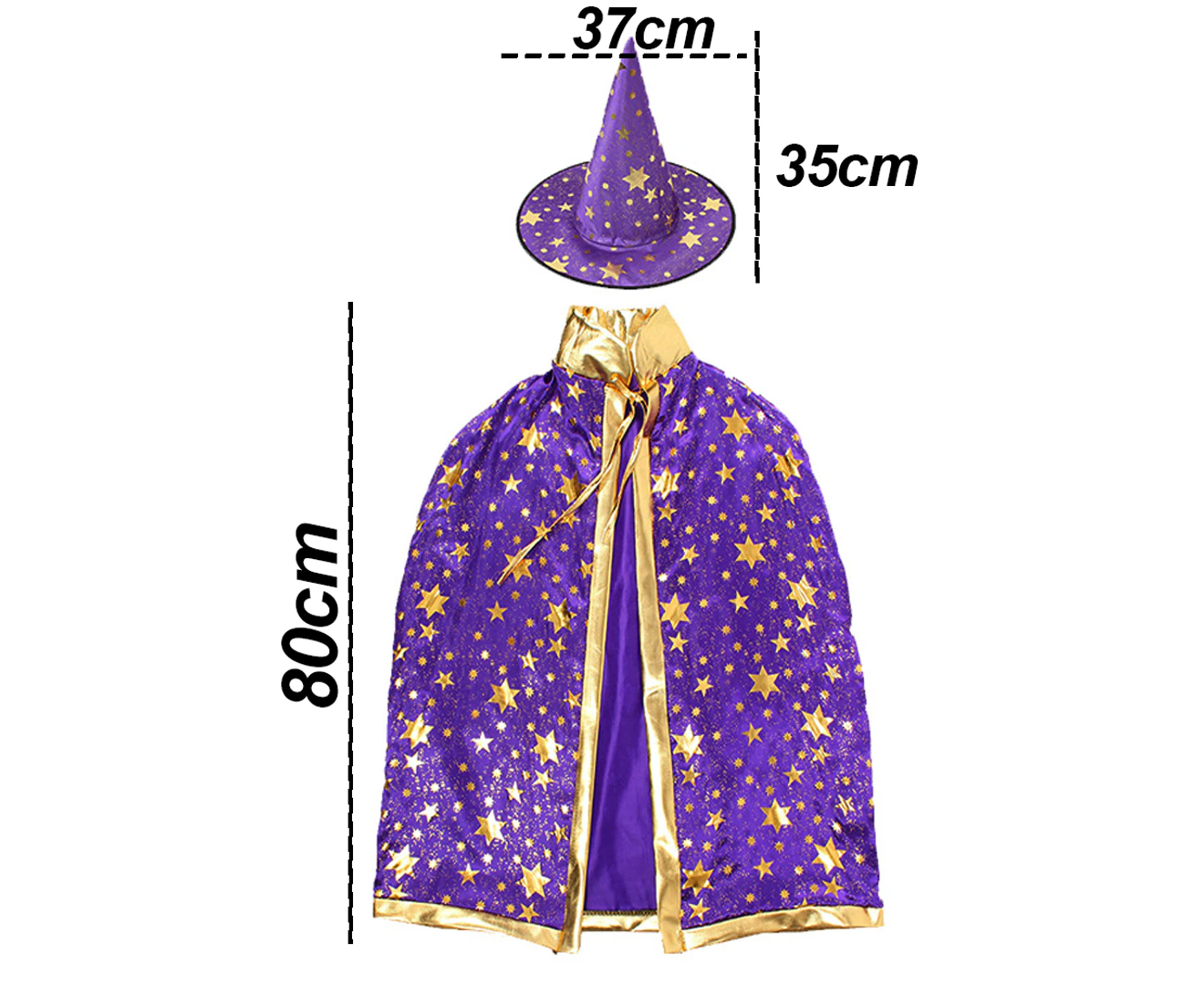 Enhance your child's imagination with our Kids Wizard Cape with Hat! Perfect for Halloween dress-up, this set includes a wizard cape and matching hat. Available in a variety of vibrant colours including Black, Blue, Orange, Pink, Purple, Red, and Rose Red.