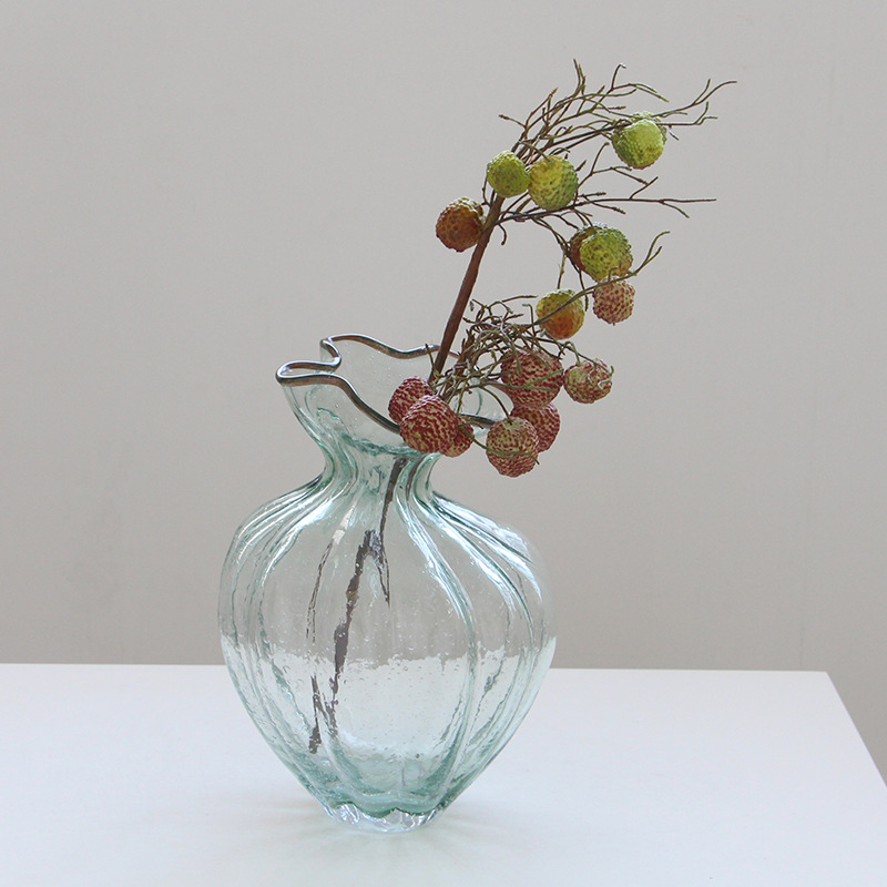 This Nordic Style Handblown Transparent Wavy Decorative Glass Vase is available in 2 sizes