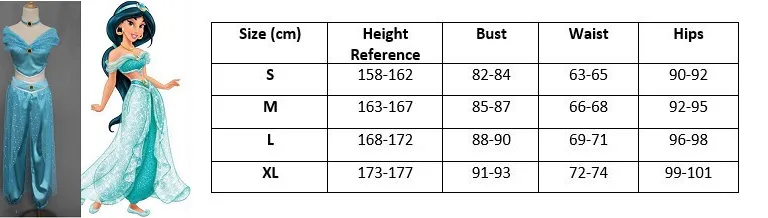 Step into the magical world of Aladdin with this exquisite Women's Aladdin Princess Jasmine Costume. This costume inludes tops and pants which captures the essence of Princess Jasmine's iconic look. Featuring a stunning shade of blue, the costume exudes elegance and charm. Perfect for costume parties, events, or even for a touch of everyday glam, this Women's Aladdin Princess Jasmine Costume will make you feel like a true princess.